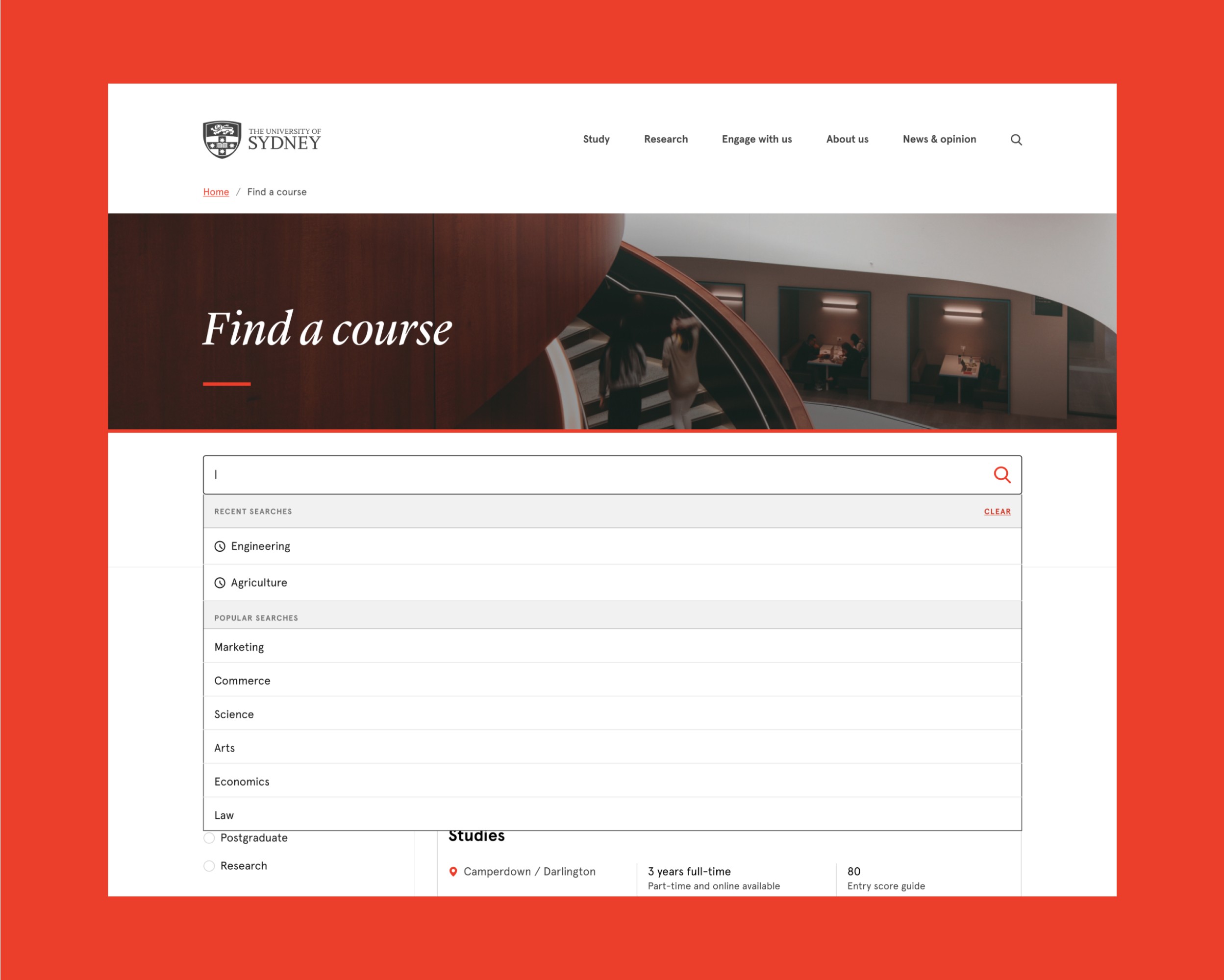 Prospective students were facing several usability issues and bugs in the new iteration of the Sydney University courses search experience, hindering their ability to effectively search, discover, and explore courses with ease. This negatively impacted the user experience and potentially led to losing prospective students.